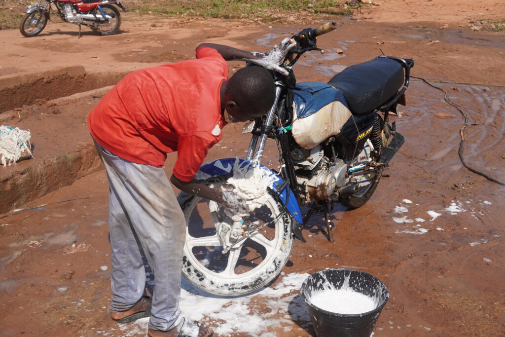 Sous un soleil de plomb, on aperçoit des jeunes armés de seaux, de chiffons et de pompes à eau, s’activant autour de motos et de voitures couvertes de poussière. Pour beaucoup, cette activité représente une alternative à la précarité et à l’oisiveté. « Il n’y a pas de travail, mais rester les bras croisés n’est pas une solution », confie Mahamat, un jeune laveur rencontré sur place.